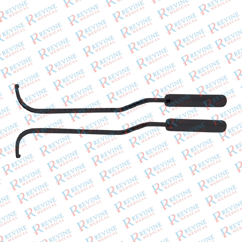 Coronal Brow Lift Retractors, Prongs 7, Blades 70 mm, Grip hooks reverse, Length 7”/18 cm, Black Ceramic Finish