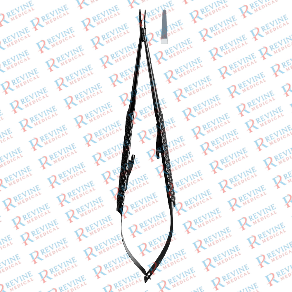 CASTROVIEJO Micro Needle Holders, TC, with flat handle, Straight, Cross-Serrated, With Lock, Length 5½"/14 cm, Black Ceramic Finish