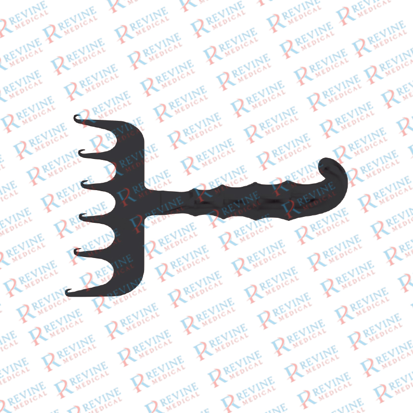 Coronal Brow Lift Retractors, Prongs 7, Blades 70 mm, Grip hooks front, Length 7”/18 cm, Black Ceramic Finish
